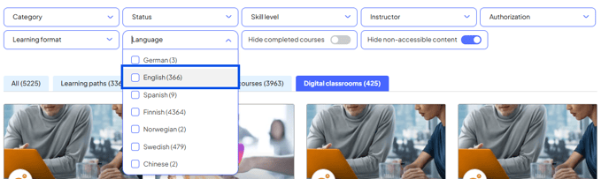 To search for trainings in English please select 'English' from the language filter.