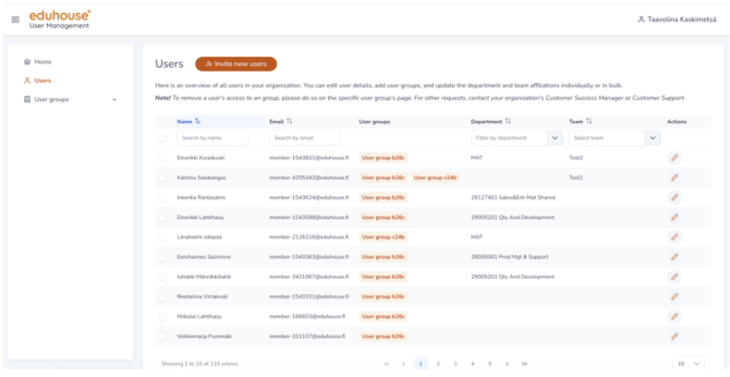 • Lisää tai kutsu uusia käyttäjiä Eduhouse-palveluun