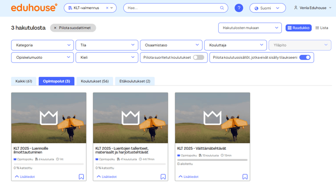 Voit osallistua KLT -valmennukseen veloituksetta, jos sinulla on voimassa oleva käyttäjätili Eduhousen koulutuspalveluun ja käyttöoikeuteesi kuuluu Talous & Vero -aihealueen koulutukset. Mikäli käyttöoikeus Talous & Vero -aihealueeseen päättyy kesken valmennuksen, päättyy myös oikeus osallistua valmennukseen maksuttomasti.